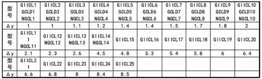 表4-6 GIICL、GCLD、NGCL型许用径向补偿量△y(单位mm)
