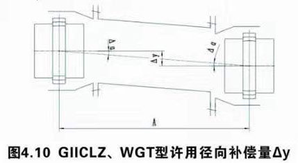 (b)GIICLZ、WGT型鼓形齿式联轴器许用径向补偿量△y,见图4.10,并按下式计算:△y=Atan△α=Atan1°30,=0.0262A